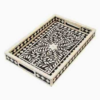 Venta al por mayor de bandeja de madera de lujo con hueso y madreperla incrustaciones hechas a mano India